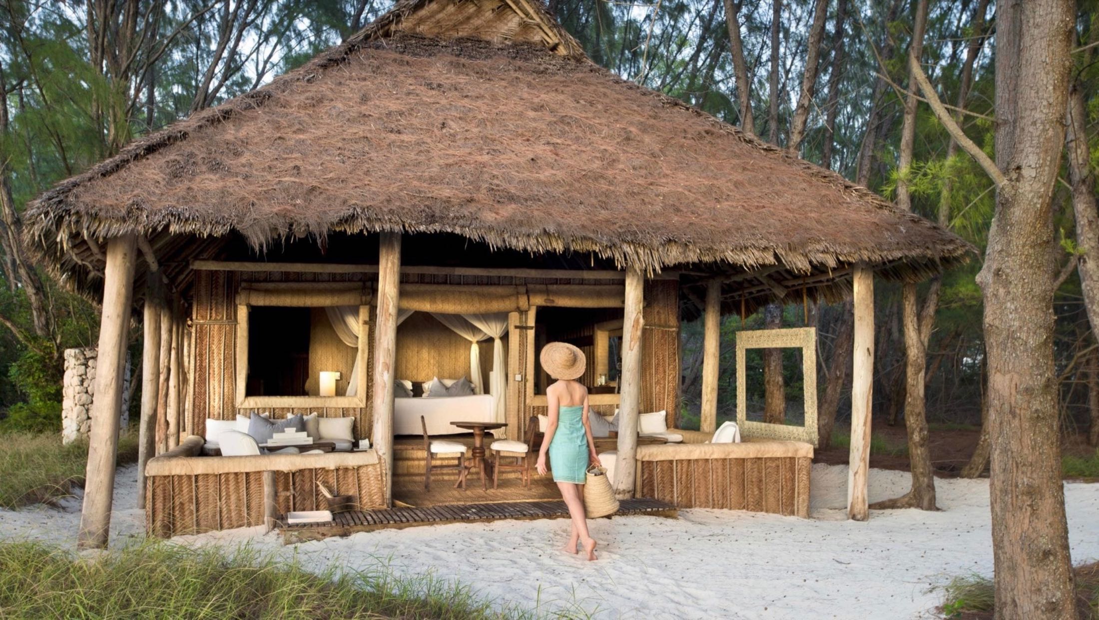 La isla está situada en una isla privada próxima a Zanzíbar, donde se han dispuesto una docena de cabañas escondidas en distintos lugares de la isla junto a una impresionante playa de arena blanca, que disfrutan de plena privacidad. Desde la propia cama se disfruta de vistas increíbles. Las cabañas han sido construidas con materiales naturales y los métodos de construcción tradicionales de la zona. Ciertamente, sin renuncia a la comodidad, bien podría ser la cabaña de Robinson Crusoe.
