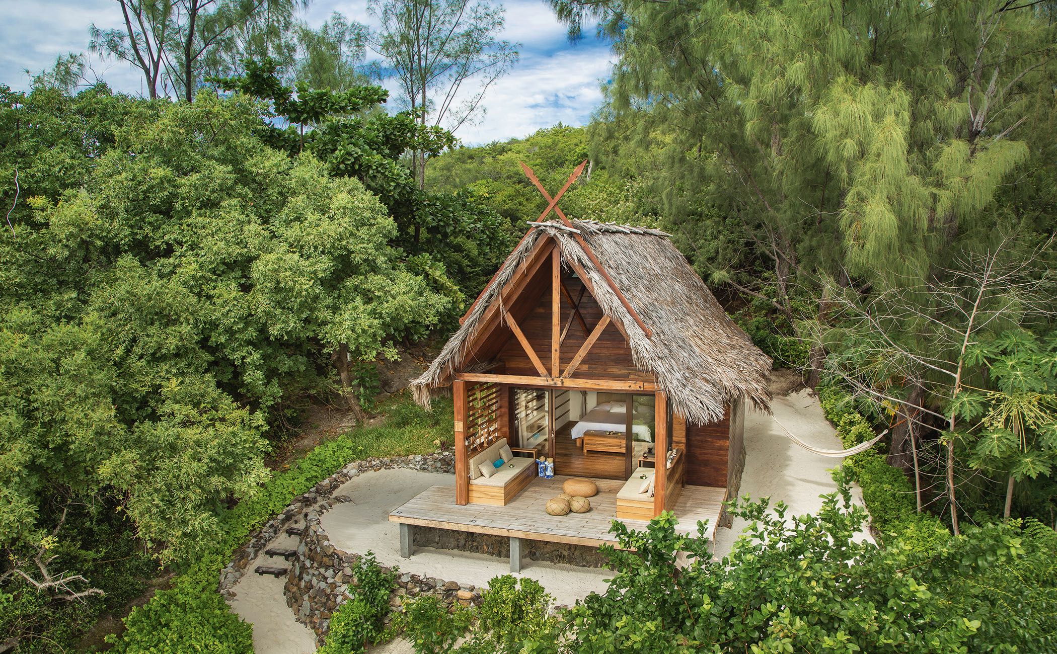 Tsarabanjina es un formidable ejemplo de lo que se ha venido a llamar el lujo descalzo (barefood luxury). Con un ambiente relajado, elegante y respetuoso con el medio ambiente, el resort ofrece un verdadero encuentro con la naturaleza, una experiencia de estilo Robinson Crusoe en una isla virgen de Madagascar, rodeada de agua azul. Se vende con paquetes ‘todo incluido’ en el que, desde bebidas premium hasta cocina auténtica y alojamiento confortable, está comprendido en el precio. |