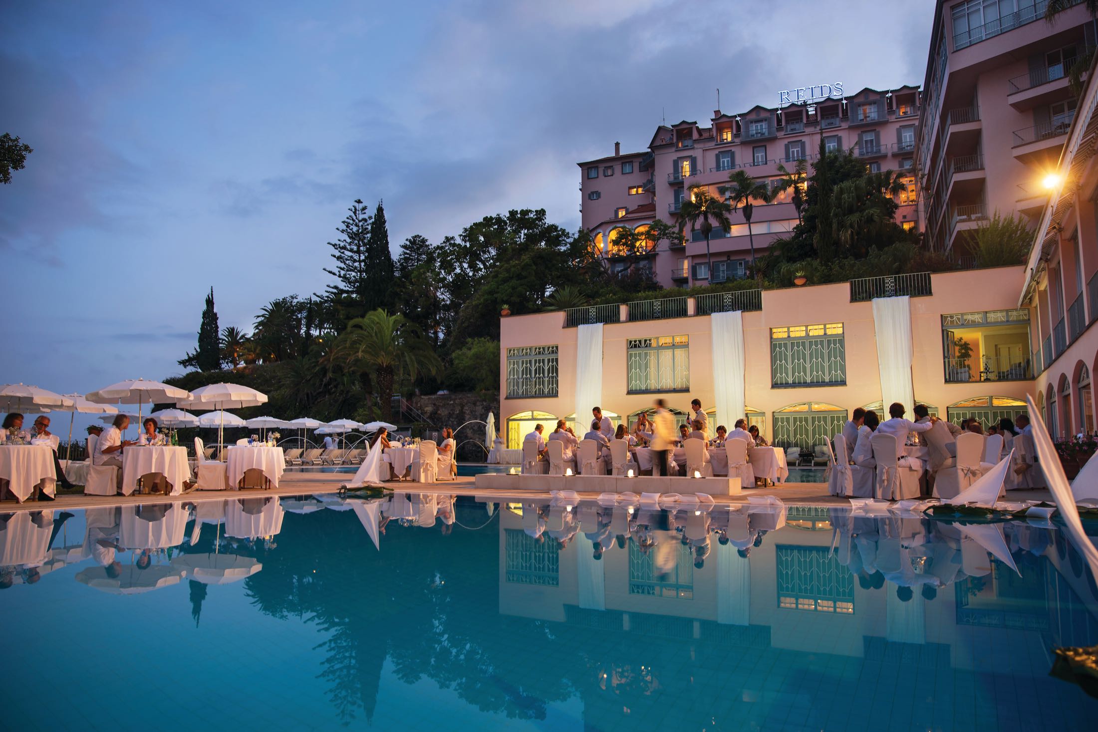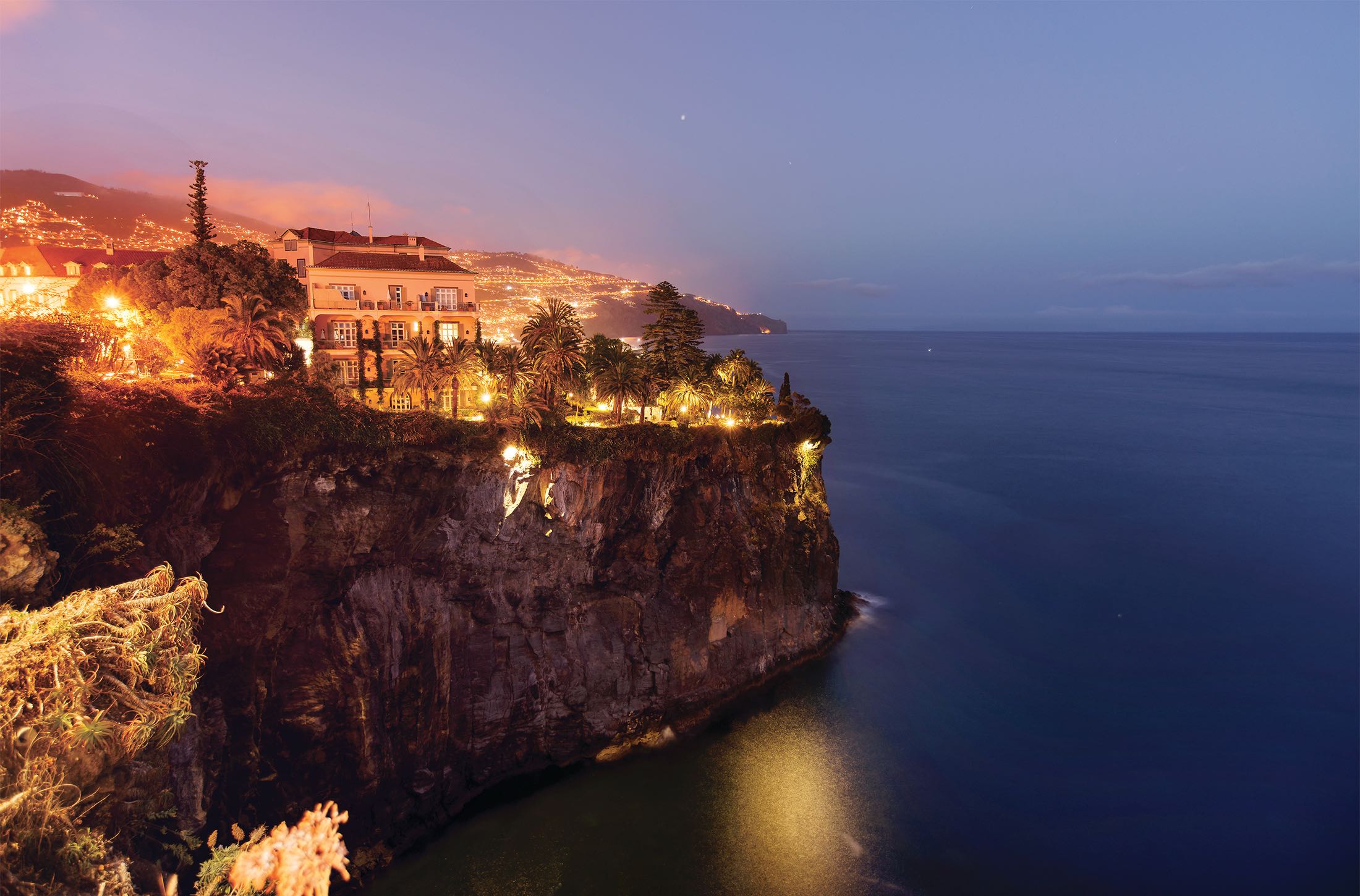 El Reid's Palace está situado sobre un alto acantilado, en una propiedad de 40.000 metros cuadrados protagonizados por sus jardines subtropicales con árboles provenientes de China, Japón, Brasil y Australia, así como cientos de flores que crecen todo el año gracias a la fértil tierra de la isla y a su clima templado, como si fuese siempre primavera. |