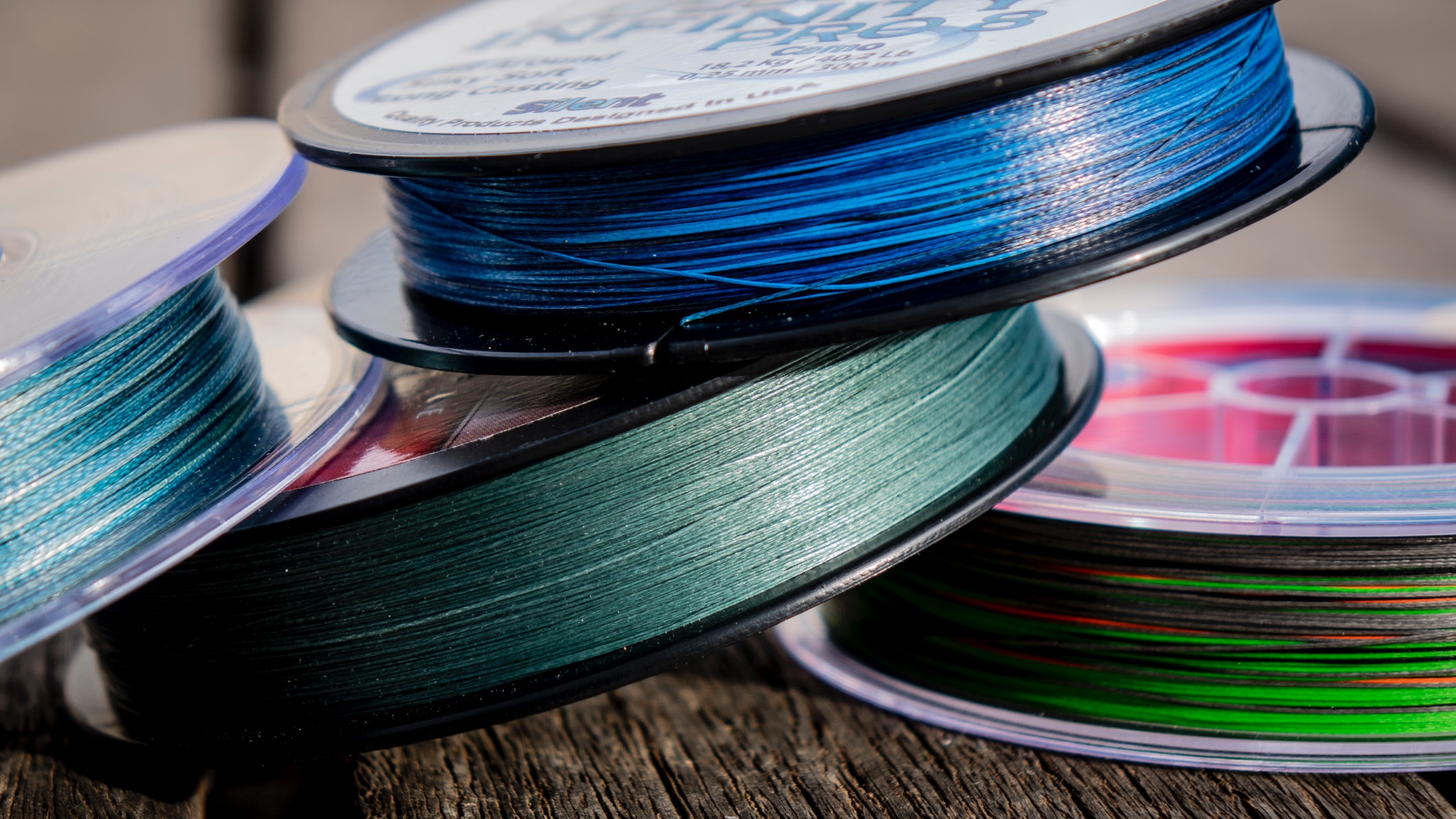 A pesar de su resistencia a la abrasión, los fondos rocosos son el principal enemigo de estas líneas ya que al roce se cortan inmediatamente mucho antes que con el monofilamento. Es justo por eso que el terminal o leader siempre debe ser de nylon o fluorocarbono. Estas líneas se fabrican en un color o en varios colores por bobina, el hecho de colorear la línea cada 5 o 10 metros es para añadir una funcionalidad más a la línea, pues nos permite poder contar de manera eficaz la distancia a la que está nuestro señuelo simplemente controlando qué color está ante nosotros. Se trata de un dato muy práctico en disciplinas como el curricán o el jigging.